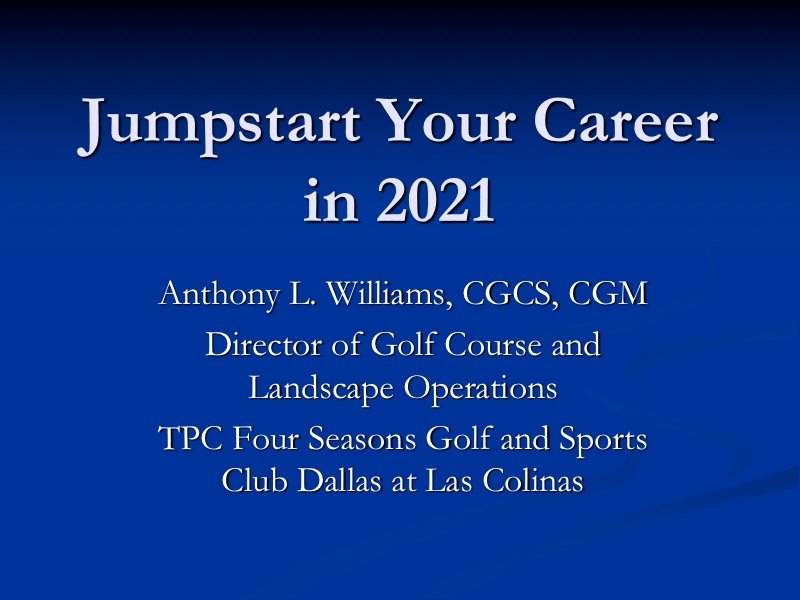 For several years, Anthony Williams, CGCS at Four Seasons in Irving, Texas, has helped kick off the webinar season with career-development tips and advice for upcoming and experienced superintendents alike.