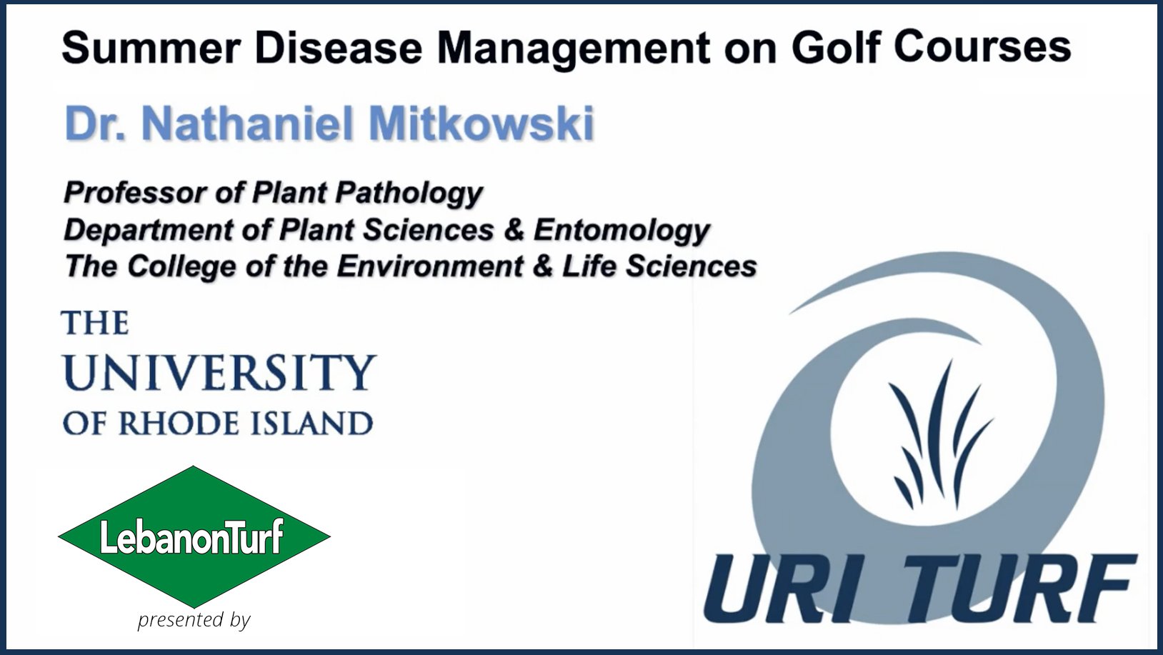 In this TurfNet University webinar presented by Lebanon Turf, Nathaniel Mitkowski, Ph.D., of the University of Rhode Island discusses some common summer turfgrass diseases and other causes of stress. This webinar includes how to identify and diagnose these diseases, how to prevent them and how to treat and recover from them once they manifest. The […]