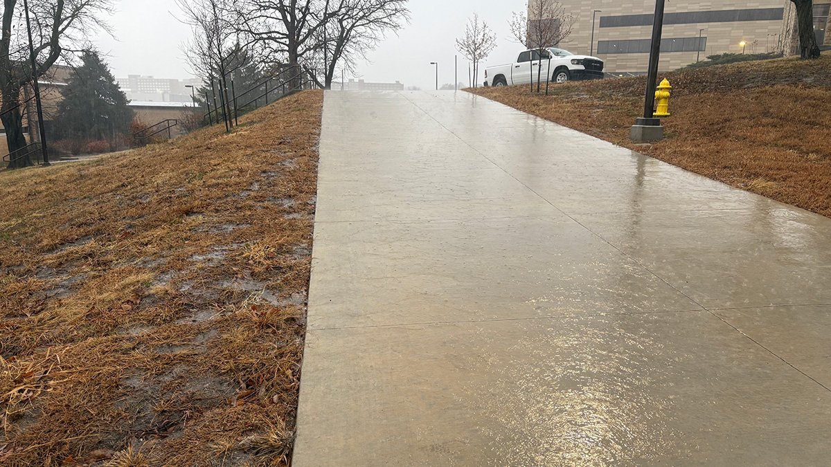 Some of my main considerations in use of water is the source, transport mechanism, and how it is delivered to a target. The first and easiest way to water is rain. It falls over the entire campus and falls where the plants are. Next, excess water due to downpour or exceeding soil holding capacity congregates into puddles, detention ponds and low areas. This is a potentially significant reservoir that we should be utilizing where it is. The last significant stop for rainfall is movement into a drainage system that moves water off campus. Rather than speeding water on its evacuation, movement could be safely delayed or impeded using landscape features to slow, spread, and soak. Every opportunity should be consistently evaluated on likelihood of inhibiting water movement. The use of more and smaller detention could significantly reduce off campus outflows. Berming, swales, and water calming features could increase time on site allowing percolation. Rather than viewing “overflow” as a problem, we should be trying to use smart design to capture and or utilize this water.
