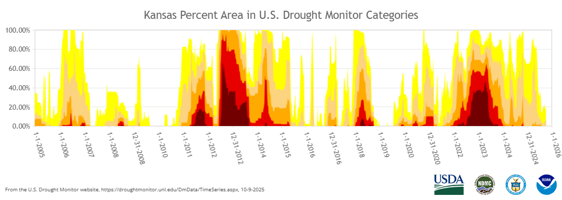 Lawrence is in Kansas, but like most states, Kansas is not a uniform environment. Our slice of Midwest heaven is on the northeast edge of the central irregular plains and is classified as Osage-Cuestas. The flora of this area is mixed tallgrass prairie and Oak-Hickory woodland. Both these plant types are well adapted to the volatile Kansas weather but especially tallgrass prairie plants. Trees largely lived in bottom lands and in riparian areas. Trees elsewhere were usually in savannah type settings and opportunistic based on microenvironments. Lawrence Kansas average annual precip is 35.58”. But as we all know averages can be deceiving. Right now, we are 3.92” low for the year and are in D1 drought (U.S. Drought Monitor). And since much of our year-to-date rainfall fell earlier in the year, we are acutely behind the last 2 months, which just happened to be the hottest time of the year.